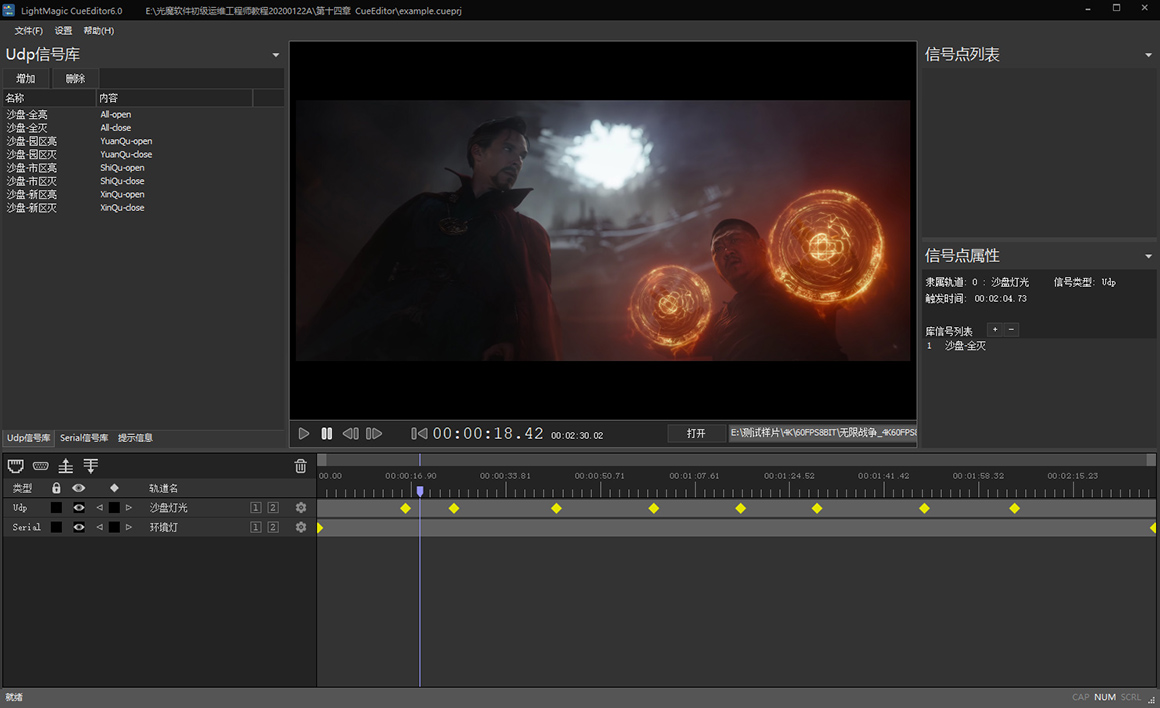 CueEditor是一个界面友好的信号编辑软件,旨在提高调试沙盘灯光、影院动感设备的工作效率,优化设备供应商与中控程序员的工作流程。它可以随着时间的流逝,对外发出基于UDP协议或串口(Serial)协议的信号序列,用于控制那些能接收同样协议信号的设备。它的工程文件可以被流水线播放器调用,不同视频文件对应不同的信号序列。CueEditor大大优化了内容脚本策划、设备供应商、程序员三者之间的协作方式,能轻松应对反复修改,大幅度减少沟通成本。